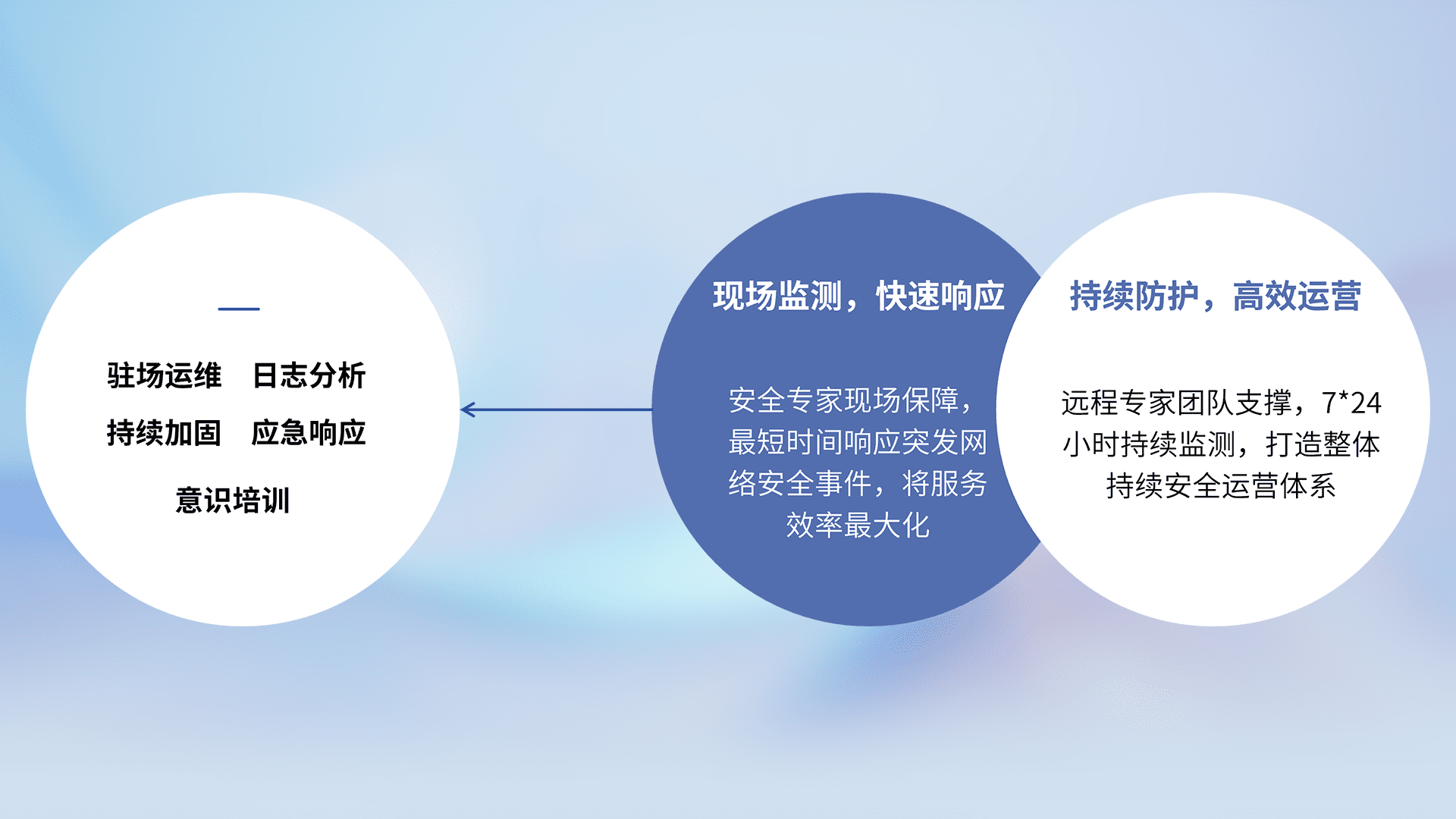 针对客户行业特性,,,提供专属的一站式安全管理服务,,,帮助客户全面感知网络空间威胁,,,,通过安全专家的线上、、、、线下防护支持,,,,实现风险闭环,,将安全保障常态化,,,,为客户打造常态化安全运维运营服务。。。